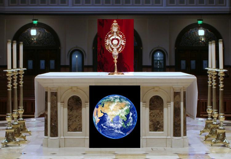 Brot und Wein sind „Früchte der Erde“ und repräsentieren als solche die ganze Erde und den Kosmos, aus dem die Erde entstanden ist. Brot und Wein sind also nicht nur Symbole der Schöpfung, sondern vergegenwärtigen sie auf dem Altar. Zu Brot und Wein – und damit zur Erde und zur Schöpfung - sagte Jesus beim Letzten Abendmahl „Das ist mein Leib, das ist mein Blut“. Wie auch schon die Evangelien insgesamt zeigen, weiß sich Jesus zutiefst zugehörig und verbunden mit der Erde. Er sagt JA zum menschlichen Dasein in dieser Welt und er sagt JA zur Dazugehörigkeit zur großen Lebensgemeinschaft der Natur in dieser Welt.